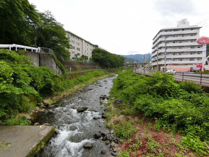 湯河原の温泉街へ続く千歳川沿い、交通量もあり視認性良好です!
